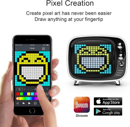 Mini Retro Bluetooth Speaker with 16X16 LED Display APP Control- Cool Animation & Gaming Room Setup & Bedside Alarm(White)
